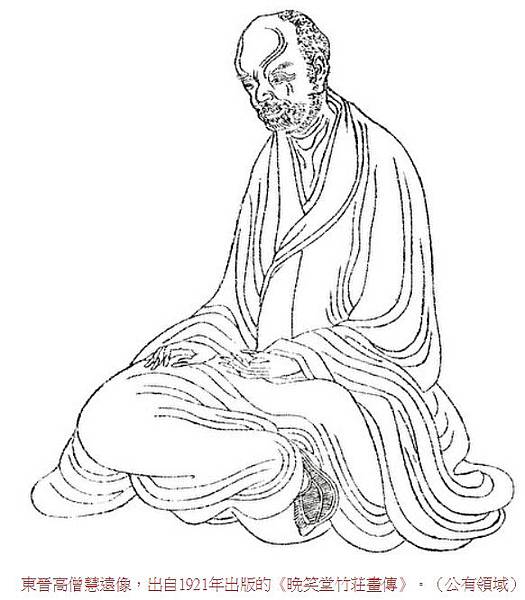 東晉高僧慧遠像,出自1921年出版的《晩笑堂竹荘畫傳》。(公有領域)