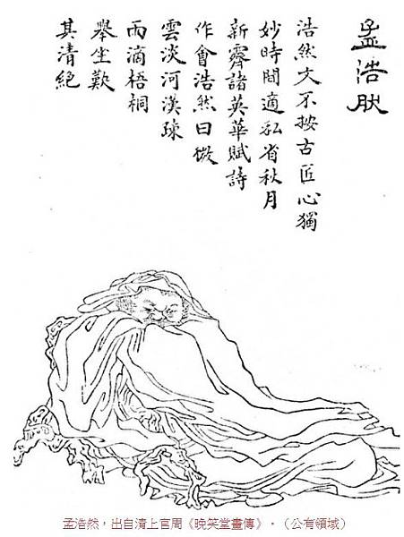 孟浩然,出自清上官周《晚笑堂畫傳》。(公有領域)