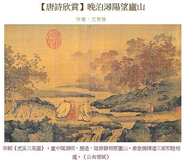 解題:作者在千里舟行途中,泊船潯陽城下,看到了有名的香爐峰,進而懷念古代高僧,隨筆寫下了這首被後人歎為「天籟」的唐詩精品。