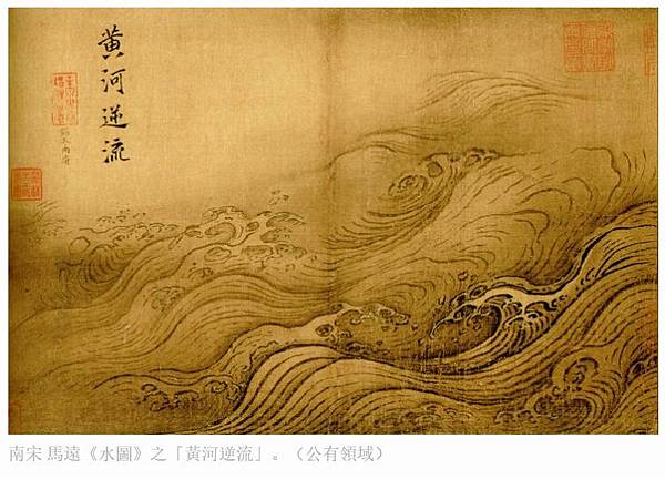 南宋 馬遠《水圖》之「黃河逆流」。(公有領域)