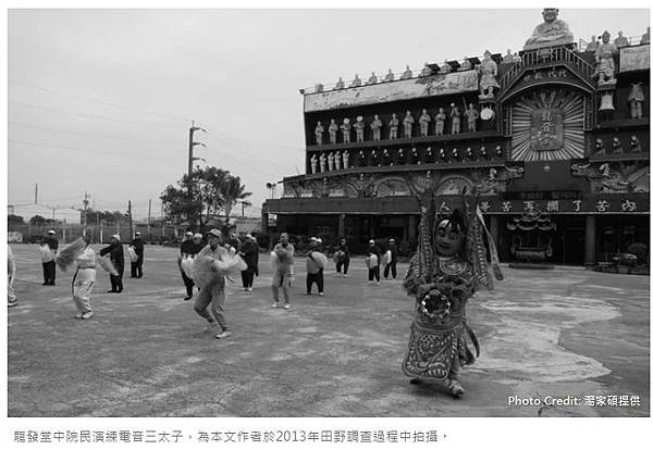 龍發堂中院民演練電音三太子,為本文作者於2013年田野調查過程中拍攝。