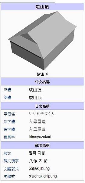 中文名稱 九脊頂 外文名稱 いりもやづくり