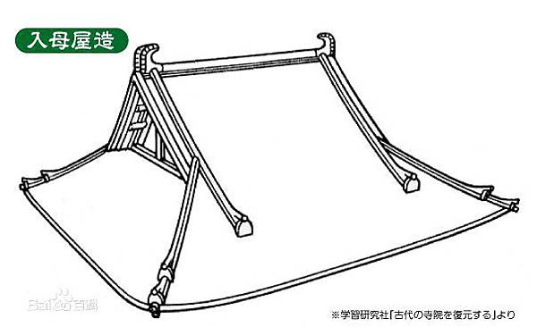 日本--「入母屋造」,即屋頂有一條正脊、四條垂脊、四條斜脊構成,故稱「九脊殿」