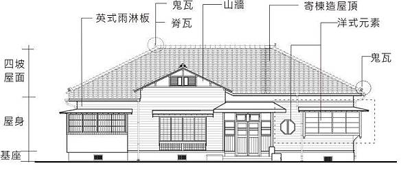 大正中期後,高等官以下官舍無涼台,開小窗,有避雨棚、日式屋瓦。
