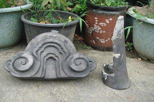 鬼瓦:是日本傳統建築正脊尾端的板狀裝飾物,又稱為「鬼板」或「棟端」。鬼瓦常雕飾成鬼臉、獸臉等花紋,具有濃厚的裝飾意味,也是日本傳統建築的特色。 - https://goo.gl/qkF1ZL