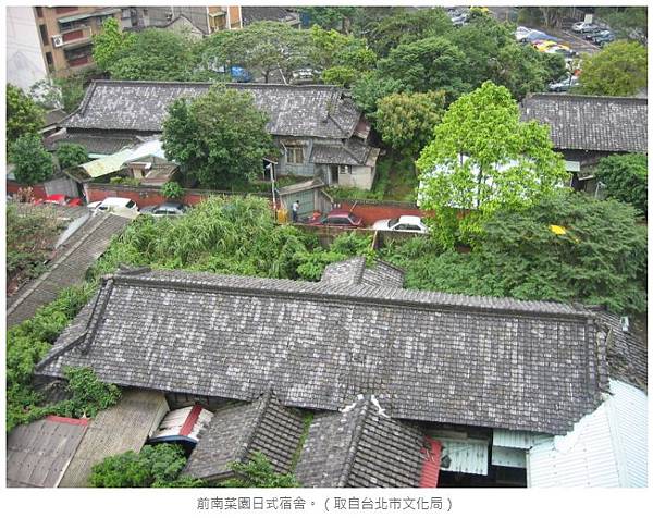 「前南菜園日式宿舍」建築群,包含2處古蹟及3處歷史建築,產權屬台銀所有,約在1910-30年間創建,日據時期就透過都市計劃設置高等文官宿舍,提供當時政經文教高級主管居住之用,不過後來遭荒廢多年,文化局為了搶救台北市留存少數街廓式的日式宿舍,文資委員實地會勘後,建議應予以保留。
