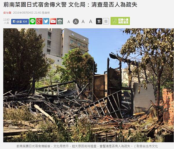 前南菜園日式宿舍傳火警 文化局:清查是否人為疏失-火災|古蹟|日式建築|前南菜園日式宿舍-風傳媒-劉怡馨 - https://goo.gl/5NHh9V