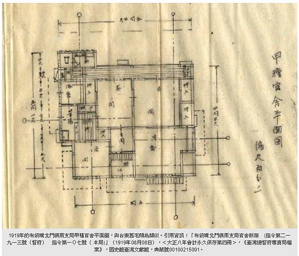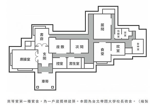 雖然,日式宿舍並不全然由中央總督府營繕組織所規劃,尚有其他產業宿舍與私人興建房舍,但由於當時來台日人多是屬於管理階層擔任公職,且「台灣總督府官舍建築標準」又是由中央頒佈通過,具有其公信力與參考價值,自然成為當時宿舍興建的規範[2]。由此,我們可以將其當成是判斷官舍類型的主要參考工具,除了可以藉此了解不同官舍種類的規模大小、建築類型關係外,更可以知道當時官制體系下,對於不同官等大小所對應分配的官舍種類。