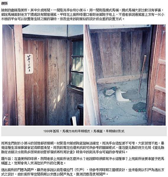 但過程中我也觀察到,現今許多正在進行修復的建物,有些直接找了建築事務所,就尚存部份進行量測後,簡單的推估一下,以符合現代思考模式的方式直接重建,對於史料研究、使用人經驗等部份似乎有所忽略,以致於修復完成的建物與實際狀況有所出入,這點或許也是強人所難,各縣市的經費有所不同,也許因此而導致主事者心有餘而力不足,亦或許負責單位並未具備充足的史實考察能力、技術、或意願,一般民眾也不會要求那麼多,也沒人知道五十年前這些建物的真實像貌,就照大家認為、同意的方向差不多的概起來了事。