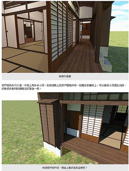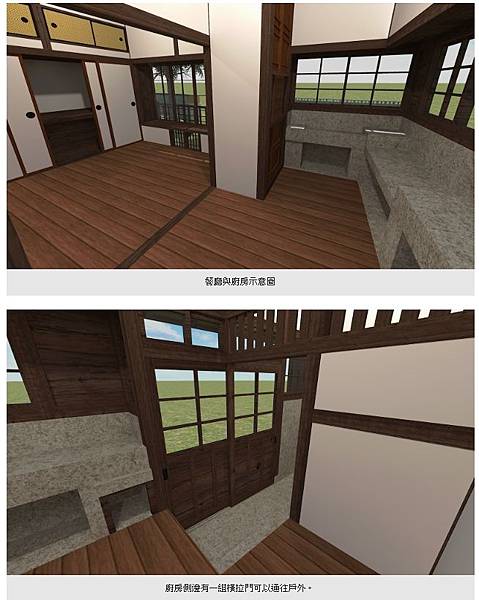 我的3D重建是藉由實際住過的人的回憶,結合史料及現存建物,綜合評估後來判斷到底那些部份是後期增建,那些部份是原始設計,依此在電腦環境中建出最接近實際的狀況。