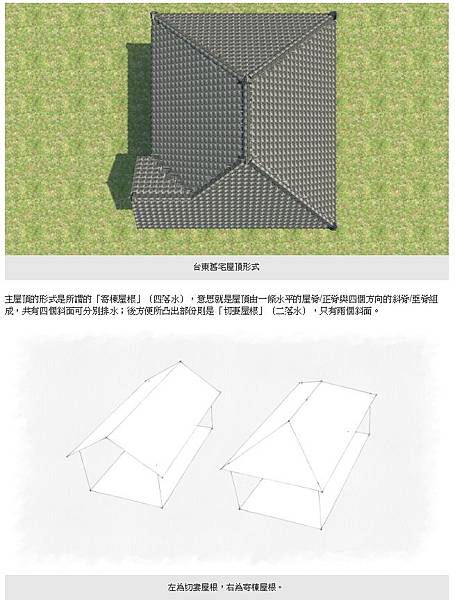 中壢中平路故事館-「入母屋造」歇山頂,即屋頂有一條正脊、四條垂脊、四條斜脊構成,故稱「九脊殿」/歇山頂-單檐廡殿頂,只有五品以上官吏的住宅正堂才能使用 @ 姜朝鳳宗族 :: 痞客邦 :: - https://goo.gl/pTodjQ