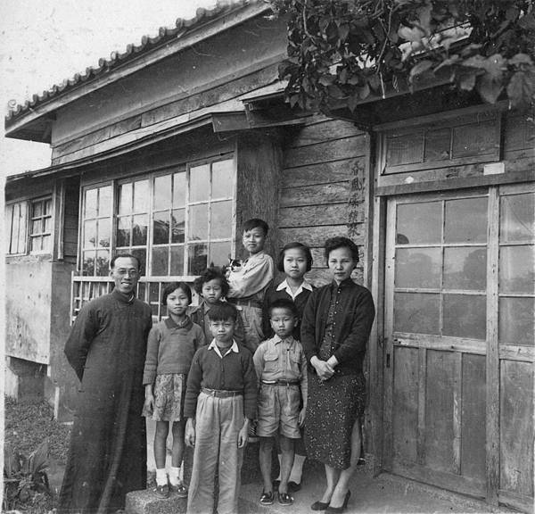 全家人在台東民權里舊宅前合影,約攝於1957年