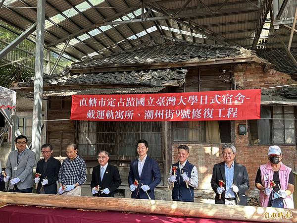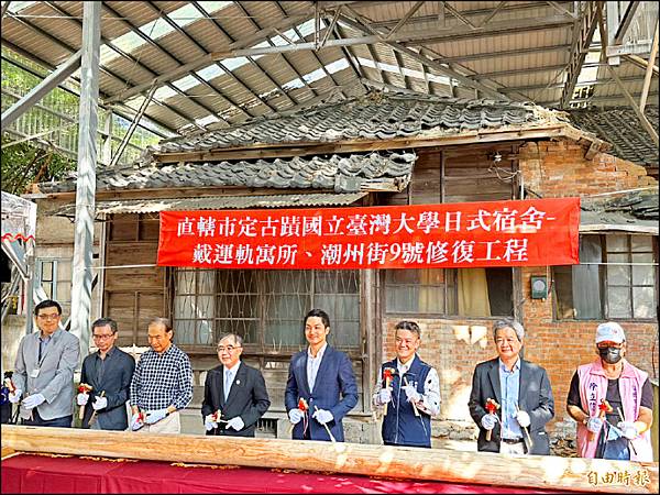 台北市直轄市定古蹟「台灣大學日式宿舍—戴運軌寓所、潮州街九號」,昨舉行修復工程開工鑿榫祈福典禮。(記者甘孟霖攝)