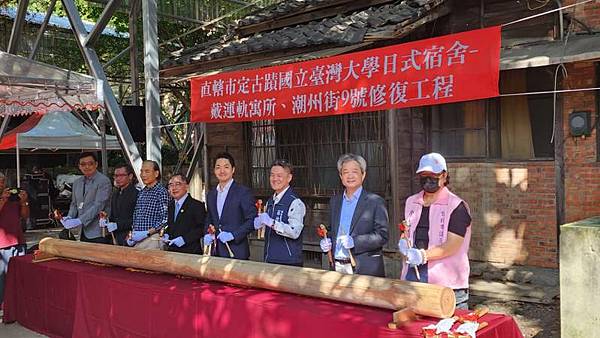 台北市直轄市定古蹟「台灣大學日式宿舍—戴運軌寓所、潮州街9號」,今(3)日舉行修復工程開工鑿榫祈福典禮。本工程由文化局補助,投入總經費約1億元,預計於2025年底修復完成,重現北市兩棟現存最高等級的高一種日式官舍風貌,以及橫跨日治到民國時期展現的豐富文化記憶