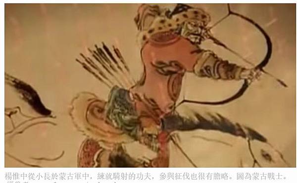 楊惟中從小長於蒙古軍中,練就騎射的功夫,參與征伐也很有膽略。圖為蒙古戰士。
