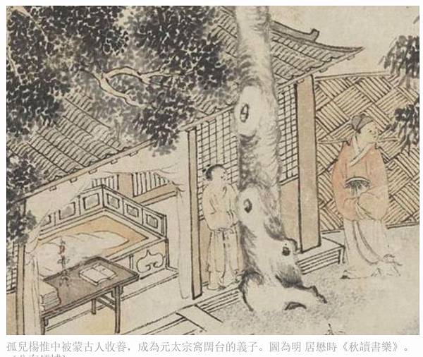 孤兒楊惟中被蒙古人收養,成為元太宗窩闊台的義子。圖為明 居懋時《秋讀書樂》。(公有領域)
