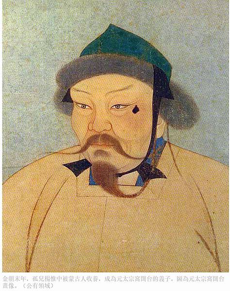 金朝末年,孤兒楊惟中被蒙古人收養,成為元太宗窩闊台的義子。圖為元太宗窩闊台畫像。(公有領域)