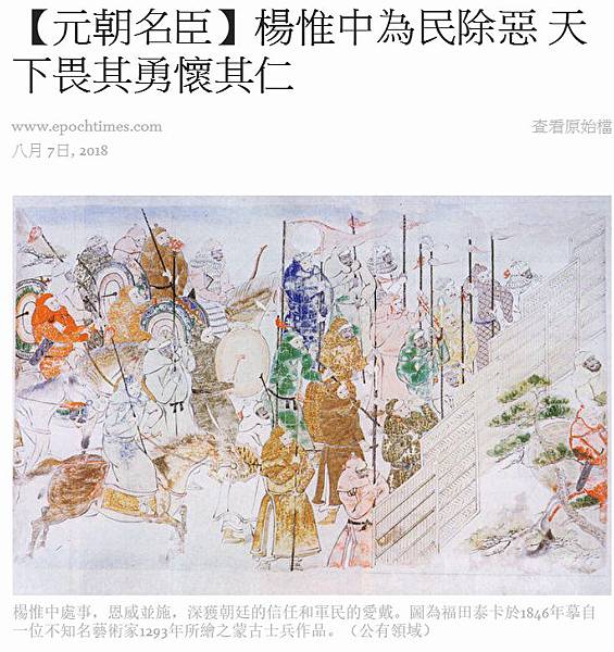 【元朝名臣】楊惟中為民除惡 天下畏其勇懷其仁