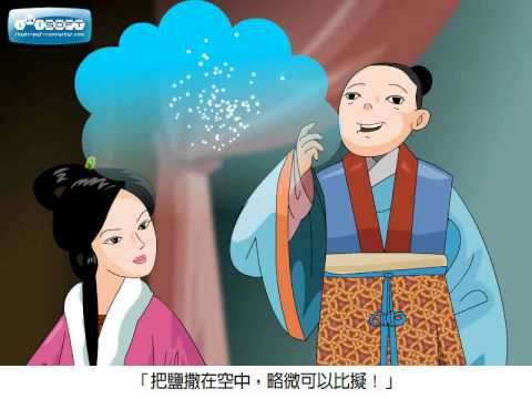 謝安長兄之子謝朗說:「撒鹽空中差可擬。」就說像是朝空中撒鹽。