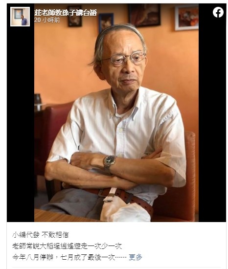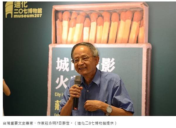 台灣文史專家莊永明逝世 台灣第一成絕響 | 文化 | 重點新聞 | 中央社 CNA https://bit.ly/3ijOb4d