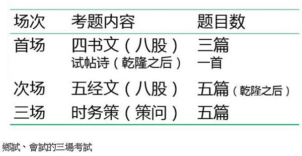 接著,蔣勤介紹了鄉試、會試和殿試的內容與形式差異。在文科舉中,童生試、鄉試、會試均分三場,最重者是首場四書八股文和次場五經八股文,第三場考察士子自然科學,歷史,經濟與政治知識等的時務策,在1901年科舉改革前不被重視。而殿試目的在於排定進士次序,選拔帝國治理的真人才,故時務策是唯一考試形式,命題最終由皇帝確定,常見主題由選官、河工、賑災、鹽鐵、賦稅、軍事等。