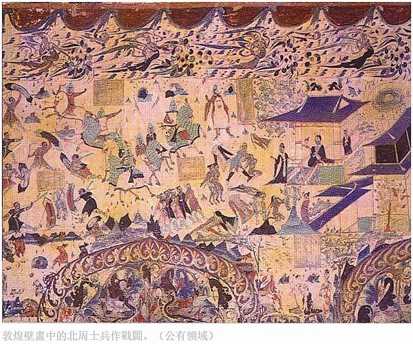 敦煌壁畫中的北周士兵作戰圖。(公有領域)