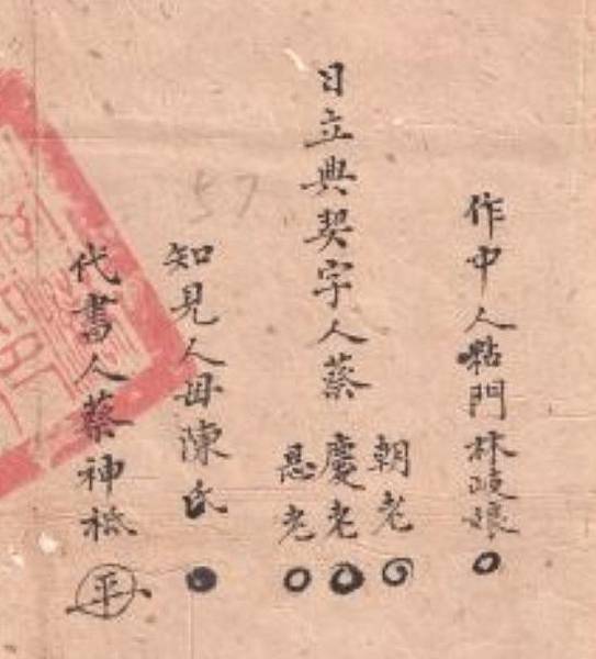 清光緒年間一份土地契約,因買賣雙方都不識字,在名字下隨便「畫」,這就是所謂的「畫押」。(記者黃明堂攝)
