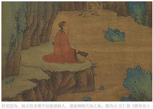何妥認為,純正的音樂不但能感動人,還能順暢天地之氣。圖為元 任仁發《橫琴高士圖》。(公有領域)
