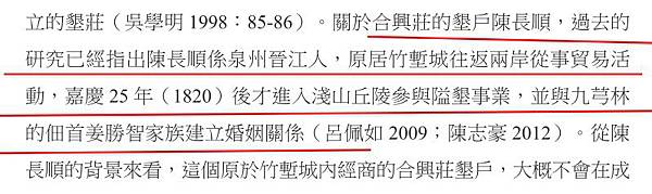 合興莊的墾戶陳長順與九芎林的佃首姜勝智家族建立婚姻關係