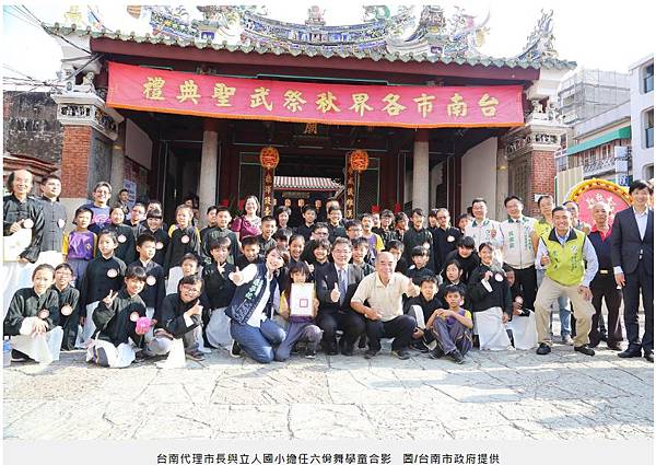 台南代理市長與立人國小擔任六佾舞學童合影 圖/台南市政府提供