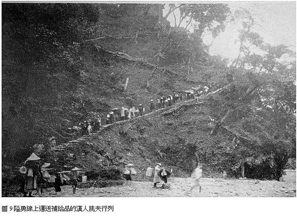 圖 9 隘勇線上運送補給品的漢人挑夫行列