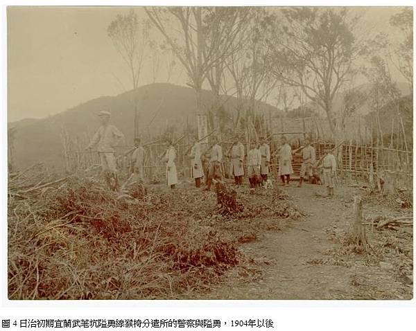 圖 4 日治初期宜蘭武荖坑隘勇線猴椅分遣所的警察與隘勇,1904年以後