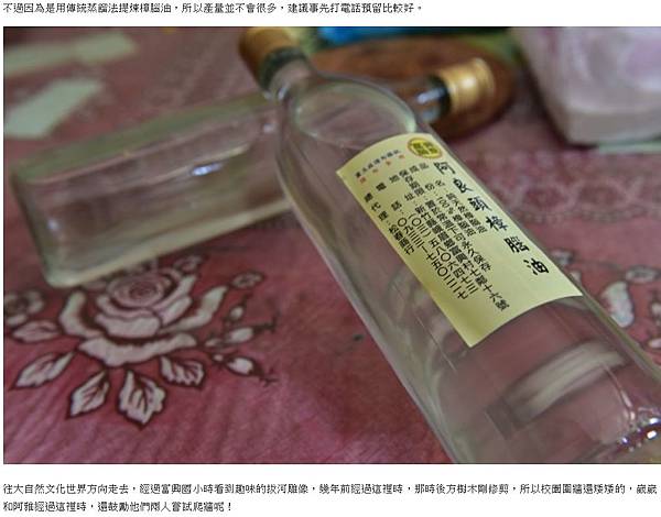 目前店內出售的樟腦油有五種規格,大方瓶、中圓瓶、小扁瓶、噴霧式、直接擦拭小瓶等,分別售價為650元、350元、250元、150元及50元。有需要時可以在店內購買,要參觀現場作業時,只有在假日時段試試看了。