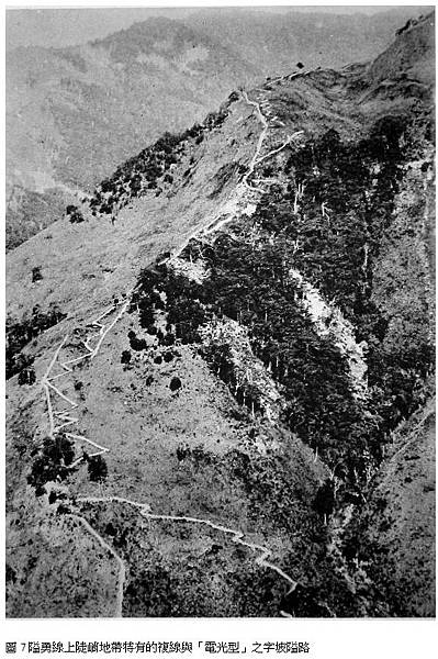 圖 7 隘勇線上陡峭地帶特有的複線與「電光型」之字坡隘路