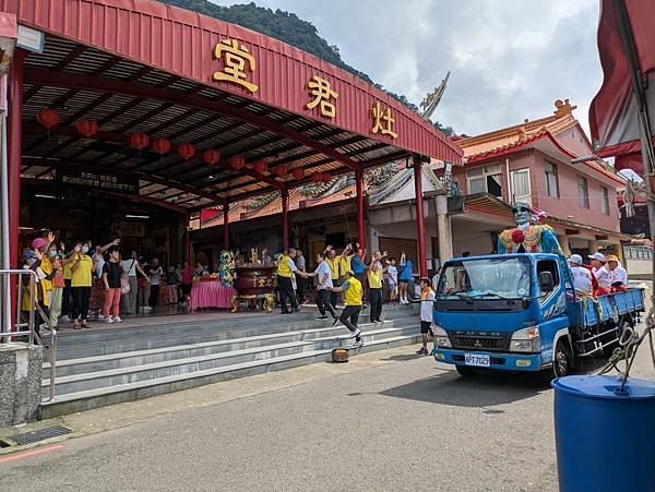 明天是8月初3灶君生,新竹縣五指山的灶君堂已有不少信徒搶先來向灶君爺祝壽。(記者蔡孟尚攝)