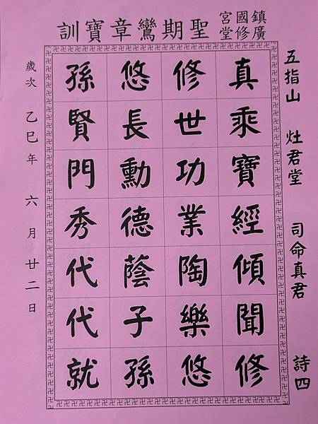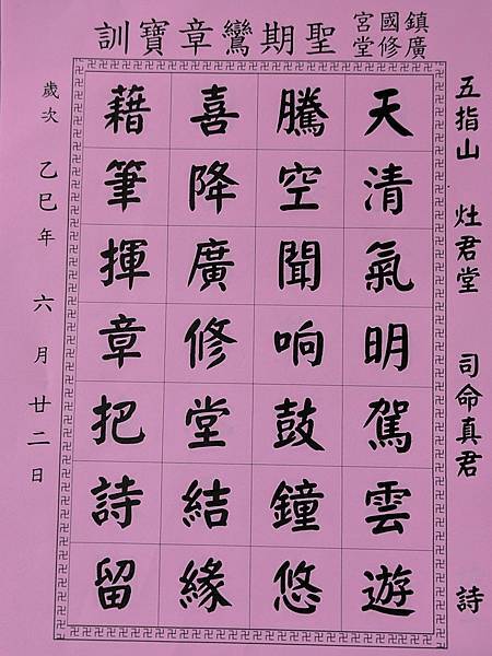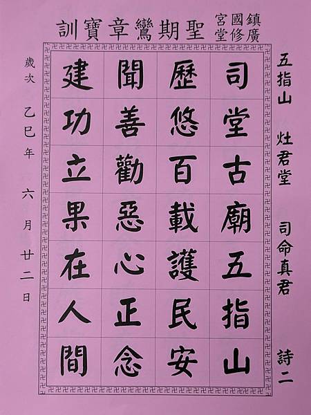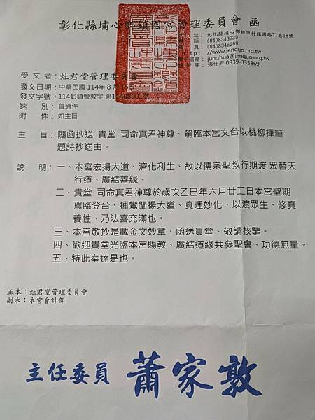 日前承蒙 彰化埔心鎮國宮 來函,隨函恭抄 五指山灶君堂司命真君神尊 於鎮國宮聖期駕臨登台,以桃柳揮鸞之題詩。📜