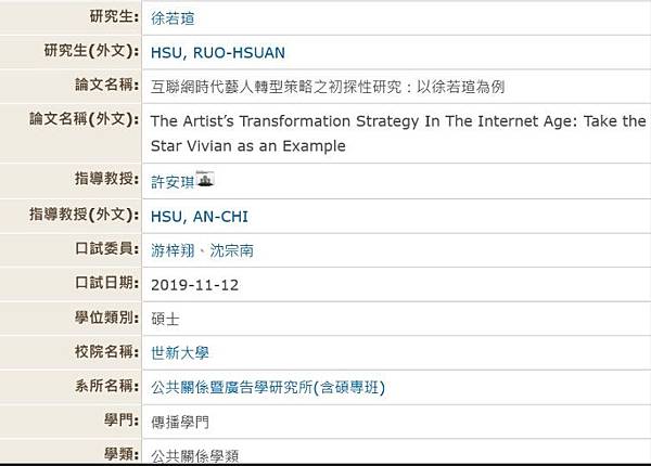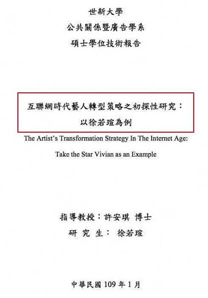 徐若瑄的碩士論文研究對象是自己。徐若瑄的指導教授解釋,此篇屬強調實務應用的「技術報告」,具有研究之選樣代表性 @ 姜朝鳳宗族 :: 痞客邦 ::