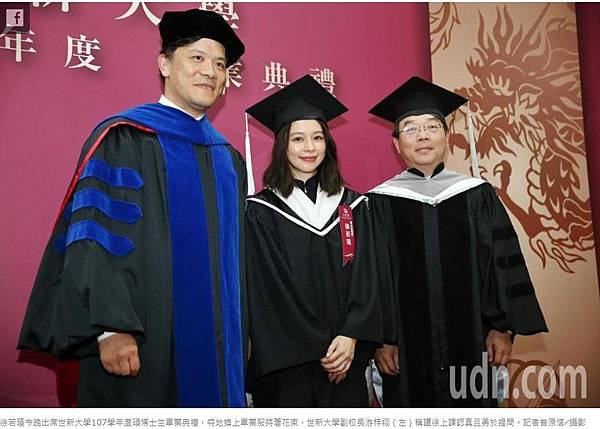 徐若瑄今年1月在世新取得碩士學位,論文題目《互聯網時代藝人轉行策略之初探性研究:以徐若瑄為例》,引發議論。(翻攝自臉書)