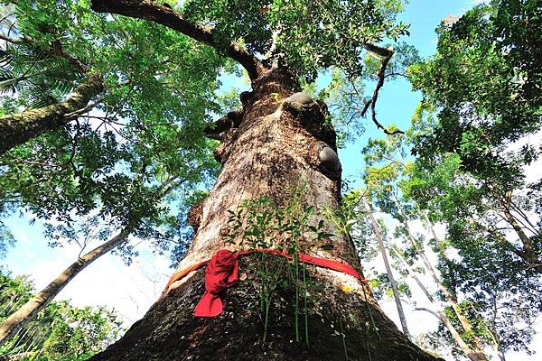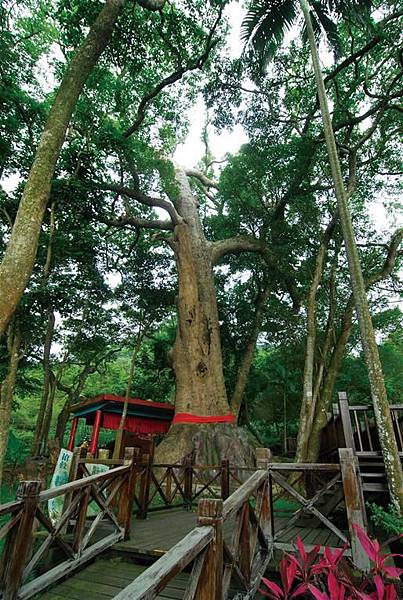 位在新竹縣北埔鄉大林村的二寮神木,是新竹縣政府列管老樹中胸圍最大的一棵,逼近7公尺的樹圍,讓老樹顯得格外雄壯威武,並成為樹下石板伯公(土地公)的最佳屏障,地方上也稱之為「伯公樹」,充滿敬意的繫上象徵長壽的紅緞帶,感謝伯公與伯公樹共同守護鄉里。