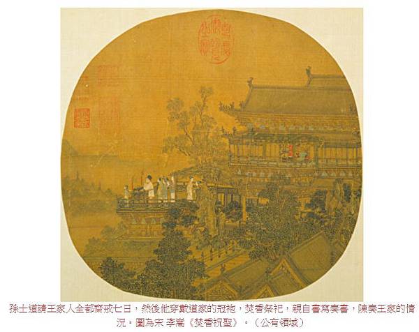 孫士道請王家人全都齋戒七日,然後他穿戴道家的冠袍,焚香祭祀,親自書寫奏書,陳奏王家的情況。圖為宋 李嵩《焚香祝聖》。(公有領域)
