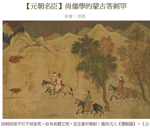 更新: 2018-09-13 3:41 PM 標籤: 元朝名臣, 答剌罕, 成吉思汗, 哈剌哈孫, 忽必烈