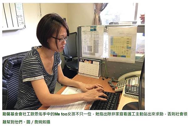 勵馨基金會社工歐思佑手中的Me too女孩不只一位,她指出除非家庭看護工主動站出來求助,否則社會很難幫到他們。圖/詹婉如攝