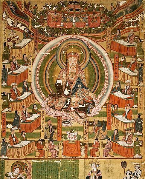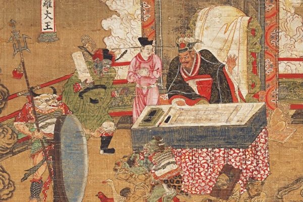 臨行前,主事人叮囑他,勸誡世人多行善事,讓人們知道善惡就像影子和回聲一樣,和人緊緊相隨,圖為10世紀敦煌《地藏十王圖》,現收藏於巴黎集美博物館。(公有領域)