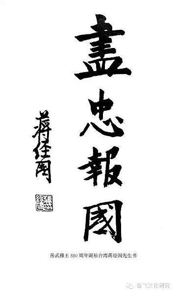 (岳武穆誕辰880週年)蔣經國先生書盡忠報國