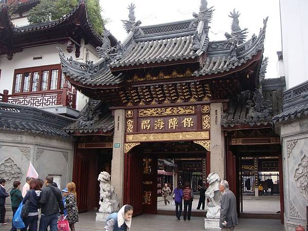 如今改稱城隍廟商區,仿古的新建築,改變整個商場的風貎!我四處張望,竟找不到豫園的大門。隨意閒逛,竟發現城隍廟的入口,想到為時一個半小時的自由時間,遊「豫園」嫌短;去沒有特色,價格又特貴的工藝店,我沒興趣;至於湯包或其他小吃,我更不想嘗試。所以看城隍廟是最好的選擇。