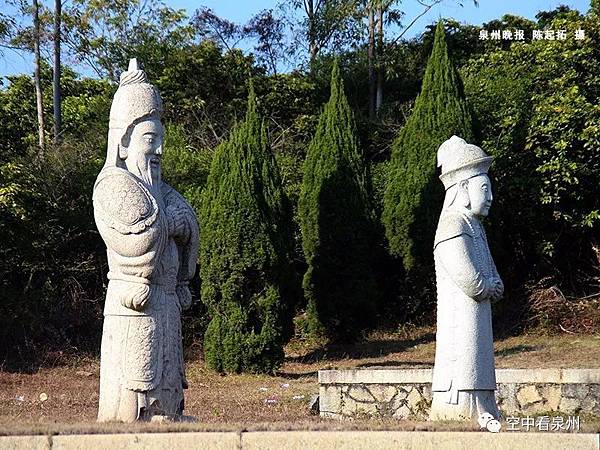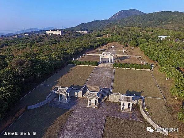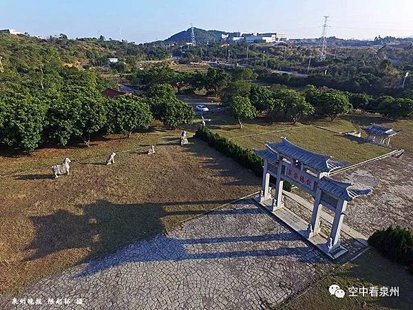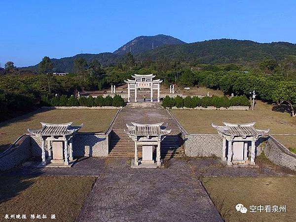 “船”的右後方視角。施琅墓是全國重點文物保護單位,佔地約6800平方米,“船頭”到“船尾”距離約130米,可以說是一艘巨艦。