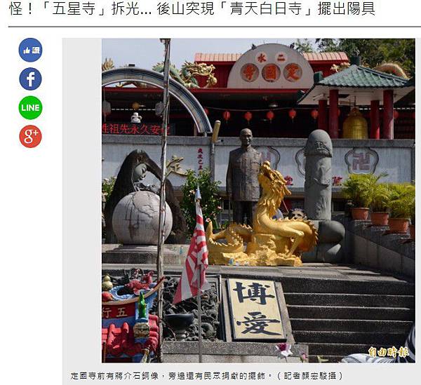 分享怪!「五星寺」拆光... 後山突現「青天白日寺」擺出陽具到Facebook 分享怪!「五星寺」拆光... 後山突現「青天白日寺」擺出陽具到Line 分享怪!「五星寺」拆光... 後山突現「青天白日寺」擺出陽具到Google+
