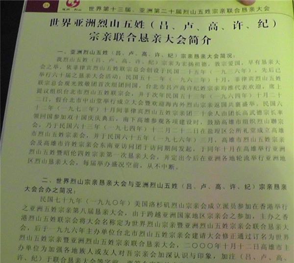 "六姓聯誼、相約烈山、敦親睦族、弘揚祖德"