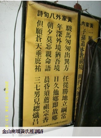 三界壇及清泉一帶的客屬黃氏大族,祖籍在福建省漳州府南靖縣小嶺同寨鄉,據族內說法,三界壇黃氏是與海濱的中角海尾黃家,有著共同的來台祖先。以前在金山地區的黃氏,大陸原鄉的祖居地,若在南靖縣或平和縣內的各族黃氏,大夥一同的清泉興築一棟公廳,共有一座標榜黃氏大姓的公廳,並有會族祭祖的固定祭儀,藉此攏絡宗族情感。