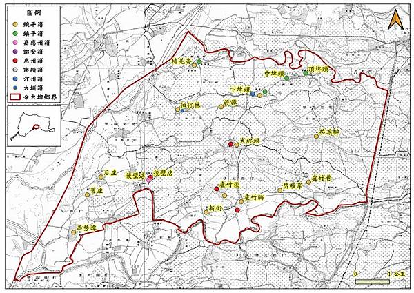 說明:1、不包含再移民之客底聚落。2、底圖為《臺灣堡圖》(1906)。